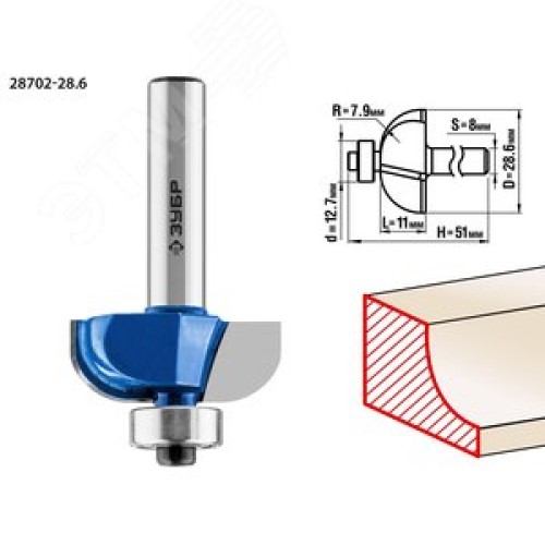Фреза кромочная калевочная №2 28,6x11мм, радиус 7.9мм