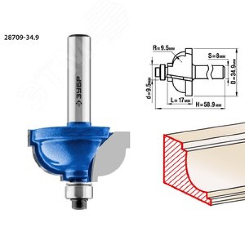 Фреза кромочная калевочная №7 34,9x19мм, радиус 9.5мм
