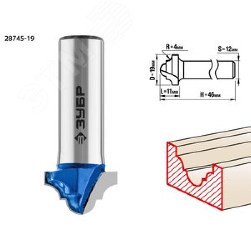 Фреза пазовая фасонная №6 19x11мм, радиус 4мм