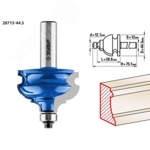Фреза кромочная фигурная №4 44,5x28мм, хвостовик 12мм