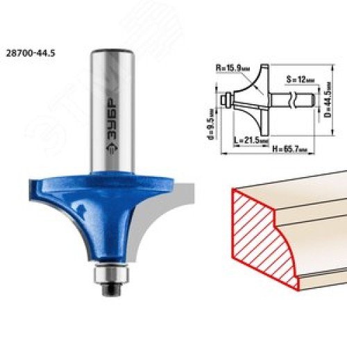 Кромочная калевочная фреза Профессионал №1, 44,5x21.5 мм, радиус 15.9 мм