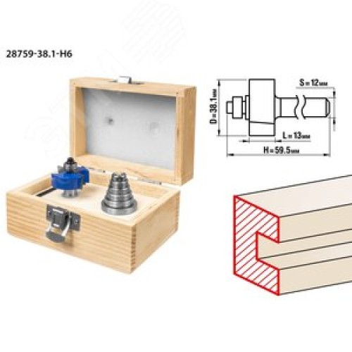 Фреза четвертная фальцевая с подшипниками 38.1x13мм, хвостовик 12мм
