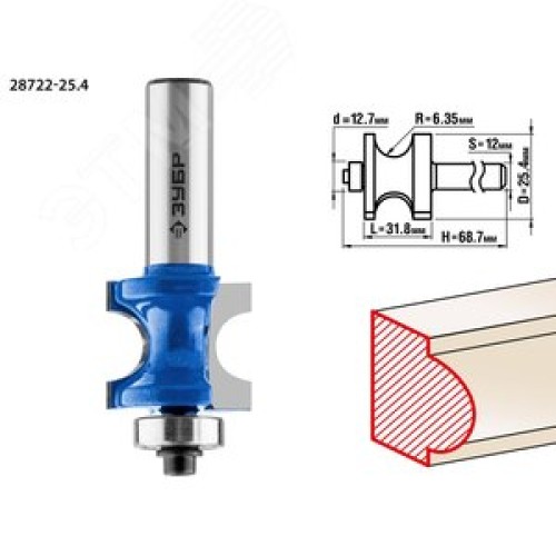 Фреза полустержневая с подшипником 25.4x31,8мм, радиус 6.3мм