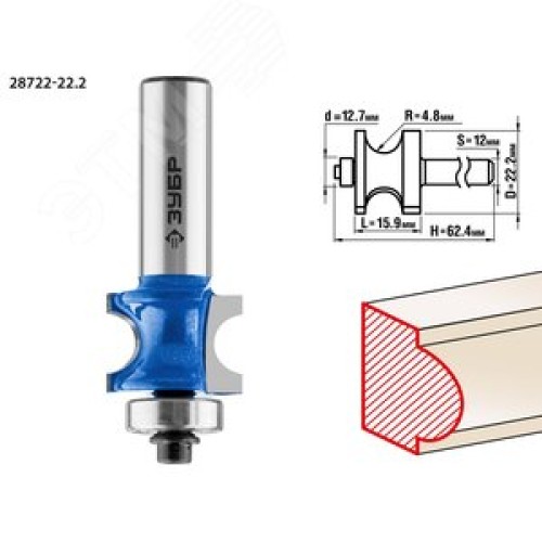 Фреза полустержневая с подшипником 22.2x25.4мм, радиус 4.8мм