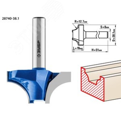 Фреза пазовая фасонная №1 38.1x19мм, радиус 12.7мм