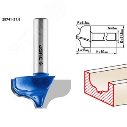 Фреза пазовая фасонная №2 31,8x16мм, радиус 6.3мм