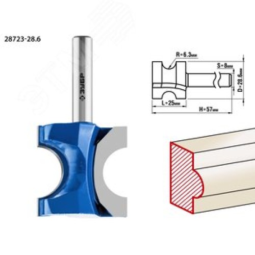 Фреза полустержневая 28,6x25мм, радиус 6.3мм