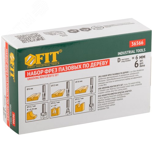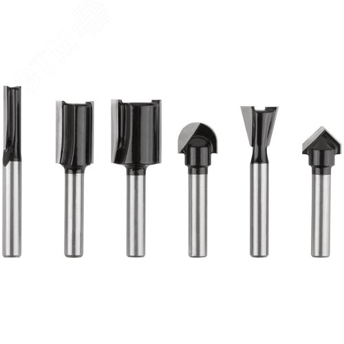Фрезы по дереву кромочные, набор 6 шт, деревянный бокс, хвостовик 6 мм