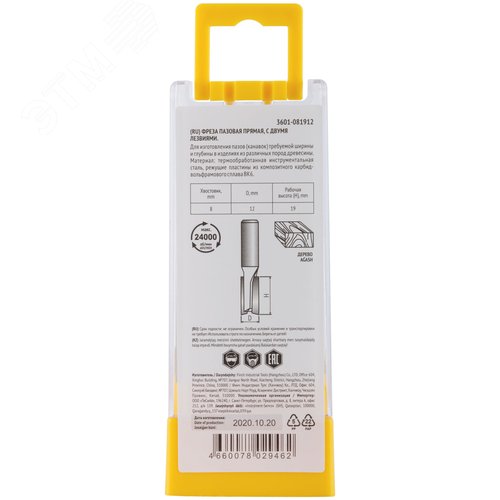 Фреза пазовая прямая с двойным лезвием DxHxL=12х19x52 мм