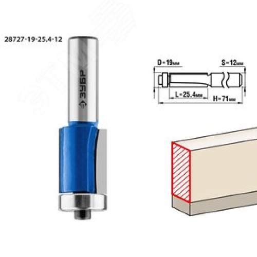 Фреза кромочная с нижним подшипником 19x25.4мм, хвостовик 12мм