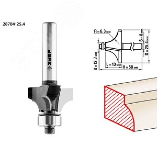 Фреза кромочная калевочная №1 25.4x13мм, радиус 6.3мм