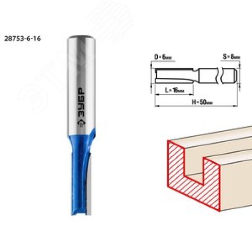 Фреза пазовая прямая 6x16мм, хвостовик 8мм