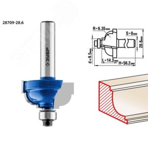 Фреза кромочная калевочная №7 28,6x16мм, радиус 6.3мм
