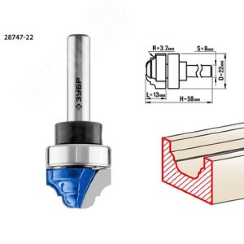 Фреза пазовая фасонная с верхним подшипником 22x13мм, радиус 3,2мм