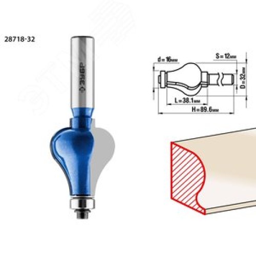 Фреза кромочная фигурная №7 32x38мм, хвостовик 12мм