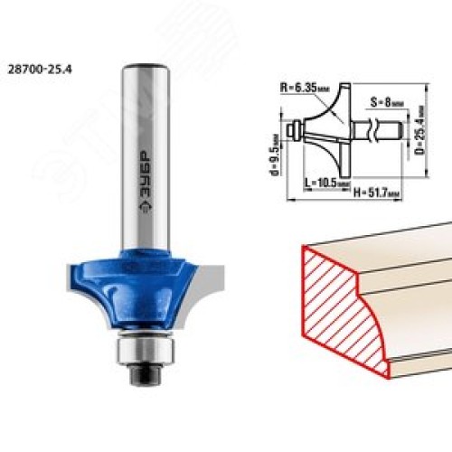 Кромочная калевочная фреза Профессионал №1, 25.4x10.5 мм, радиус 6.3 мм