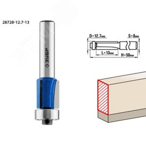 Фреза кромочная с нижним подшипником (3 лезвия) 12.7x13мм, хвостовик 8мм