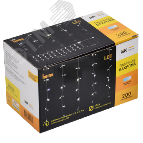 Гирлянда бахрома 4,5х0,7 м 200 светодиодов белый свет IP44 прозрачный шнур 3 м 230 В транзит LIGHTING