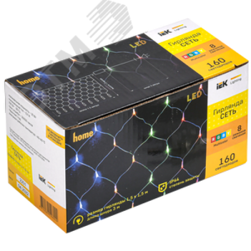 Гирлянда Сеть 1,5х1,5 м 160 светодиодов RGB IP20 прозрачный шнур 3 м 230 В контроллер 8 сцен LIGHTING