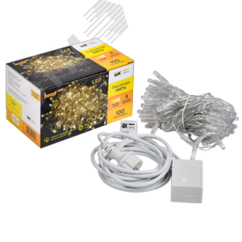 Гирлянда нить 10 м 100 светодиодов теплый белый свет IP44 прозрачный шнур 3 м 230 В контроллер 8 сцен LIGHTING