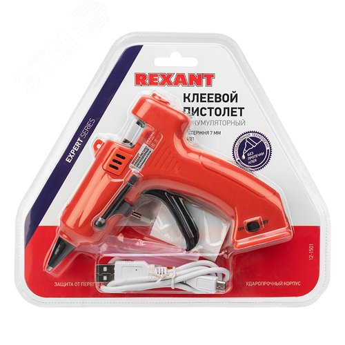 Пистолет клеевой, 10 Вт, диаметр 7 мм, аккумуляторный