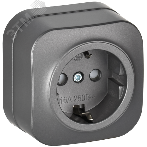 GLORY Розетка 1-местная для открытой установки с заземлением с защитными шторками 16А РСш20-3-ХСм сталь матовый IEK