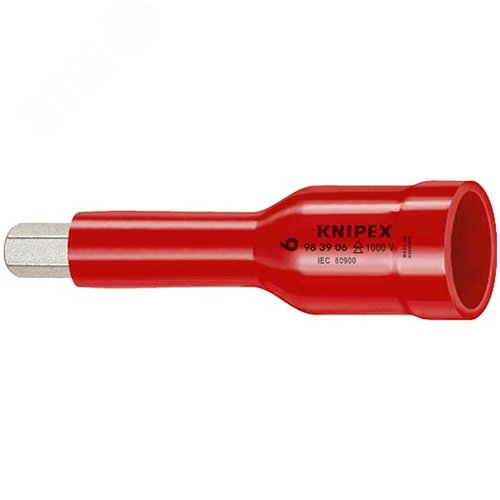 Головка торцевая VDE 1000V DR 3/8 с насадкой для винтов с внутренним шестигранником 10 мм диэлектрическая L-75 мм