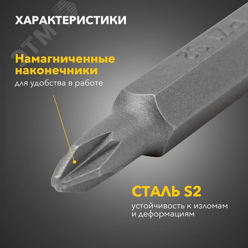 Преимущества Биты изготовлены из стали S2, которая славится своей высокой прочностью и долговечностью