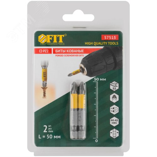Биты кованые сталь S2 односторонние 50 мм PZ2 Профи 2 шт блистер