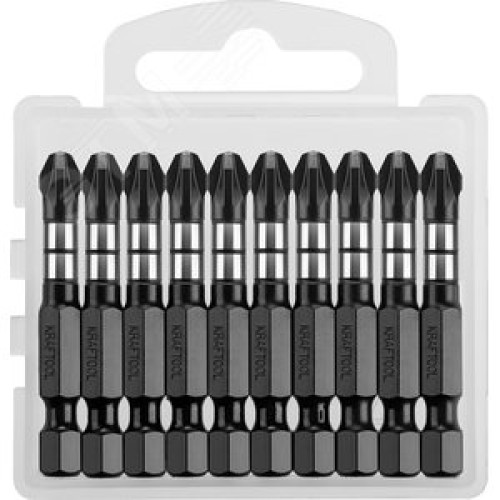 Биты Impact Pro, Pozidriv, тип хвостовика E 1/4'', PZ3, 50мм, 10шт, в пластиковом боксе