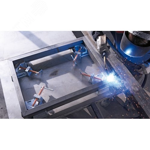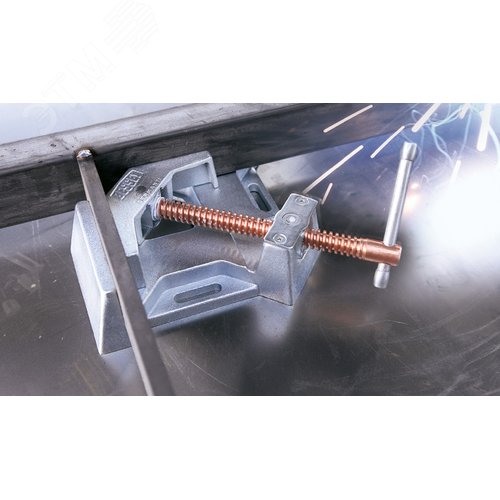 Струбцина угловая для сварки, 90 град, 2X90, макс. проход 60 мм, медное покрытие винта предотвращает налипание брызг при сварке