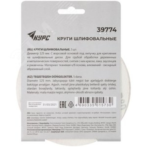 Круги шлифовальные сплошные (липучка), алюминий-оксидные, 125 мм, 5 шт Р 80 гибкая -14А