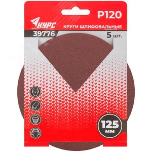 Круги шлифовальные сплошные (липучка), алюминий-оксидные, 125 мм, 5 шт Р 120 гибкая -14А