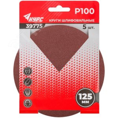 Круги шлифовальные сплошные (липучка), алюминий-оксидные, 125 мм, 5 шт Р 100