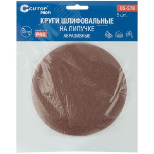 Круги абразивные шлифовальные на ворсовой основе под липучку (Р40, 125 мм, 5шт) гибкая -14А