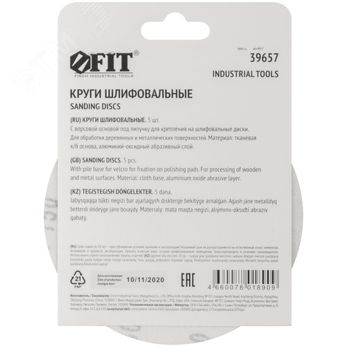 Круги шлифовальные сплошные (липучка), алюминий-оксидные, 125 мм, 5 шт Р 150 гибкая -14А