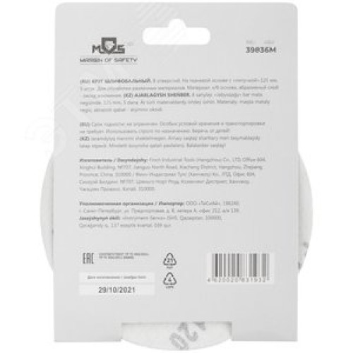 Круги шлифовальные с отверстиями (липучка), алюминий-оксидные, 125 мм, 5 шт Р 120