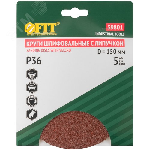 Круги шлифовальные сплошные (липучка), алюминий-оксидные, 150 мм, 5 шт Р 36 гибкая -14А