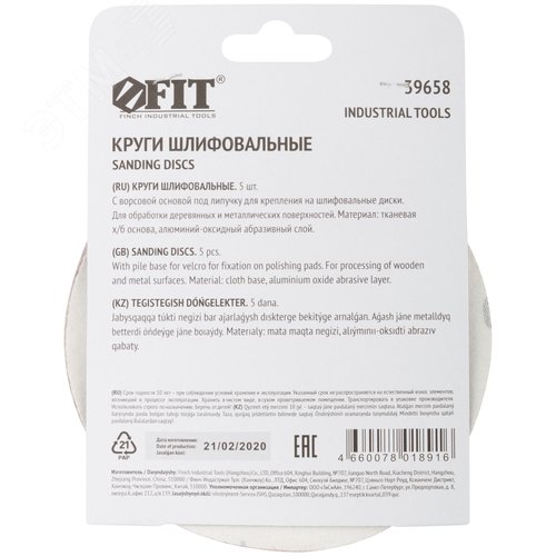 Круги шлифовальные сплошные (липучка), алюминий-оксидные, 125 мм, 5 шт Р 180 гибкая -14А