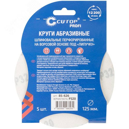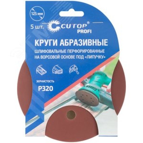 Круги абразивные шлифовальные перфорированные на ворсовой основе под ''липучку'' (Р320, 125 мм, 5шт), Profi