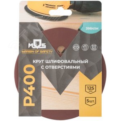 Круги шлифовальные с отверстиями (липучка), алюминий-оксидные, 125 мм, 5 шт. Р 400