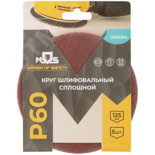 Круги шлифовальные сплошные (липучка), алюминий-оксидные, 125 мм, 5 шт Р 60 гибкая -14А