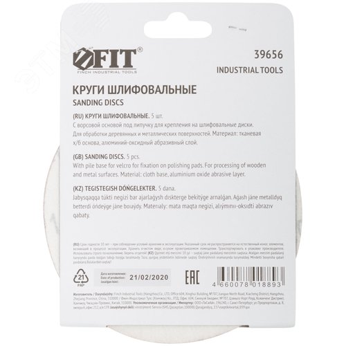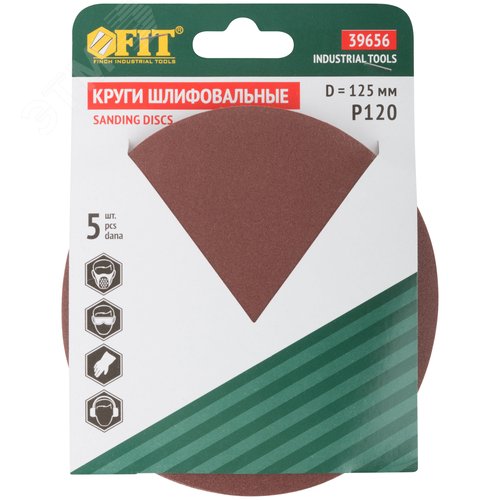 Круги шлифовальные сплошные (липучка), алюминий-оксидные, 125 мм, 5 шт Р 120 гибкая -14А