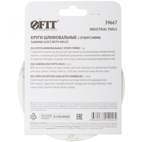 Круги шлифовальные с отверстиями (липучка), алюминий-оксидные, 125 мм, 5 шт Р 150 гибкая -14А
