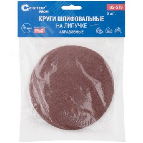 Круги абразивные шлифовальные на ворсовой основе под ''липучку'' (Р60, 125 мм, 5шт) гибкая -14А