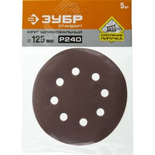 Круг шлифовальный ''СТАНДАРТ'' из абразивной бумаги на велкро основе, 8 отв., Р240, 125мм, 5шт