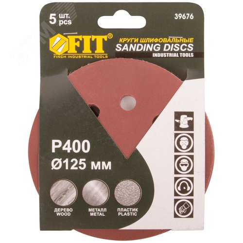 Круги шлифовальные с отверстиями (липучка), алюминий-оксидные, 125 мм, 5 шт Р 400 гибкая -14А