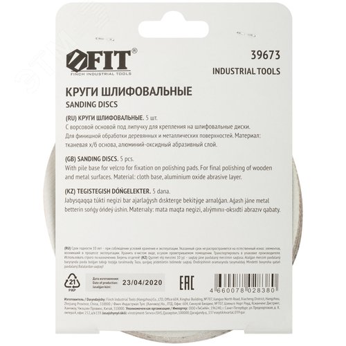 Круги шлифовальные сплошные (липучка), алюминий-оксидные, 125 мм, 5 шт Р 600 гибкая -14А