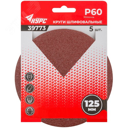Круги шлифовальные сплошные (липучка), алюминий-оксидные, 125 мм, 5 шт Р 60 гибкая -14А
