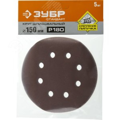 Круг шлифовальный ''СТАНДАРТ'' из абразивной бумаги на велкро основе, 6 отв., Р180, 150мм, 5шт